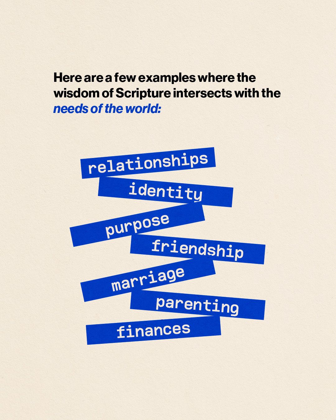 Here are a few examples where the wisdom of Scripture intersects with the needs of the world: