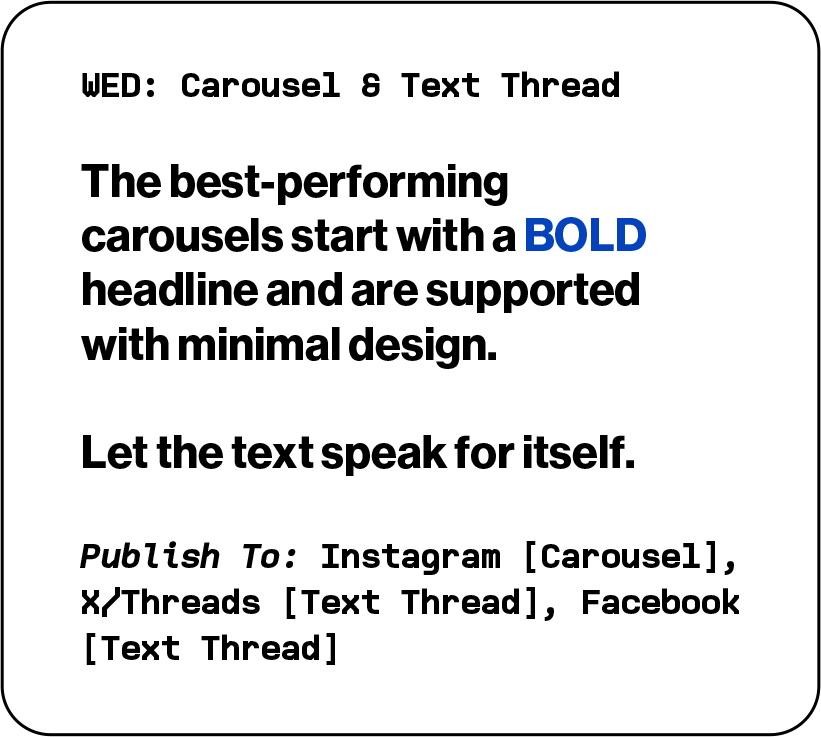 Publish To: Instagram [Carousel], X/Threads [Text Thread], Facebook [Text Thread]