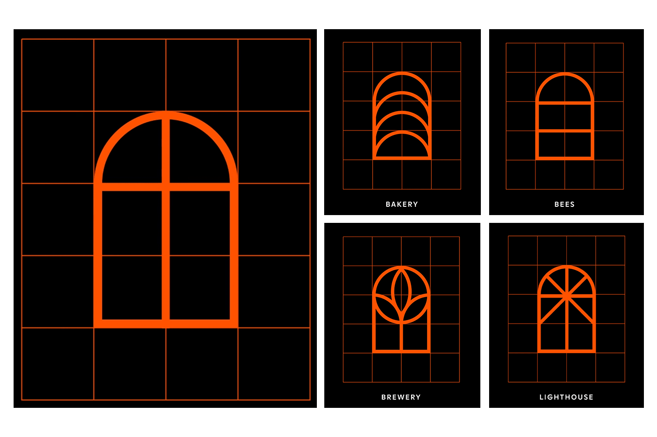 Then, Omse took that same window outline and used it as a frame for different applications throughout the church.